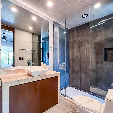 The Tulum accommodation includes a bathroom with a separate toilet and a shower. Hairdryers, bath sheets, and towels are also part of the bathroom amenities.