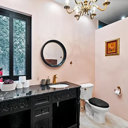 Along with self-catering amenities like a fully-fitted kitchen, this 5-bathroom villa also offers an outdoor dining area. The nearest airport is Aeropuerto de Playa del Carmen, located 44 miles away from Casa Halo - Mansion, Nightclub, Pool, Sonos, Gated, Staff Villa.