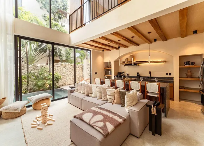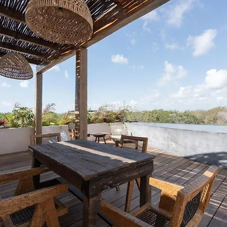 Chic 3Br Villa - 2 Pools With Rooftop Pool Modern Boho Design Tulum offers proximity to nearby tourist spots, such as Luna Maya Beach, situated 1.5 miles away.