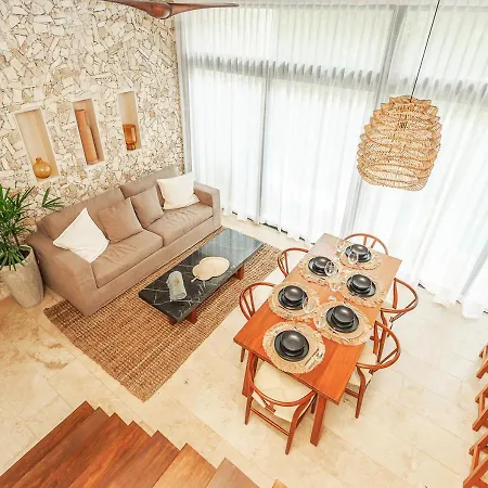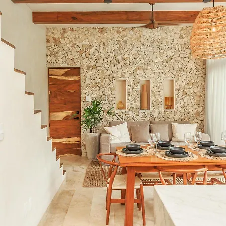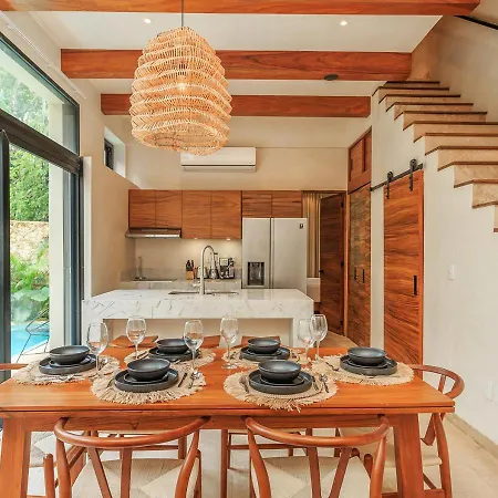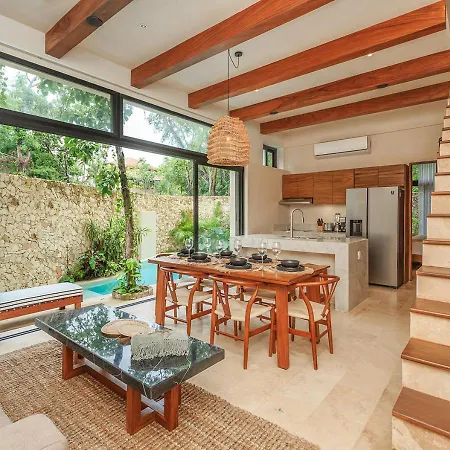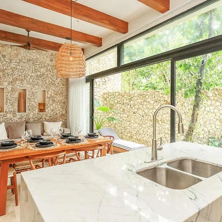 Situated 2.1 miles from Iklab Art Center, the 3-bedroom Eco Luxury With Garden Bathtub And Private Pool Villa Tulum invites guests to relax at a patio. Offering a car park as well as Wi-Fi, this 3-bathroom villa is situated in the Zama district.