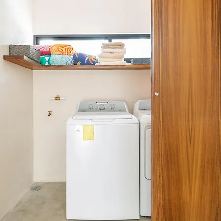 Luxury Villa Near Tulum Beach 10 Px comes with a fridge in an equipped kitchen for cooking. The nearest Playa Del Carmen, Quintana Roo airport is 44 miles away from the Tulum villa.