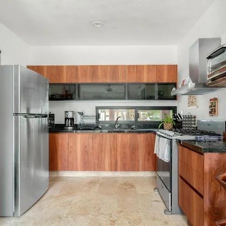 Guests are welcome to cook their own meals in a fully-fitted kitchen of the Tulum villa. The nearby Asadero El Tio Poc Chuc is located just a 7-minute stroll away. The Tulum property offers a swimming pool, as well as yoga instruction for fitness lovers. Hiking, lawn tennis, and cycling can be enjoyed nearby and a fitness suite is available onsite.