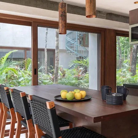A fully furnished kitchen, alongside with an outdoor dining area are available for dining. There is also oven and a dishwasher in the shared kitchen. Guests can enjoy a meal at Cafe Maya-Xel Tulum, located 0.3 miles away. The Talisman Tulum Villa is also 41 miles from Aeropuerto de Playa del Carmen airport.