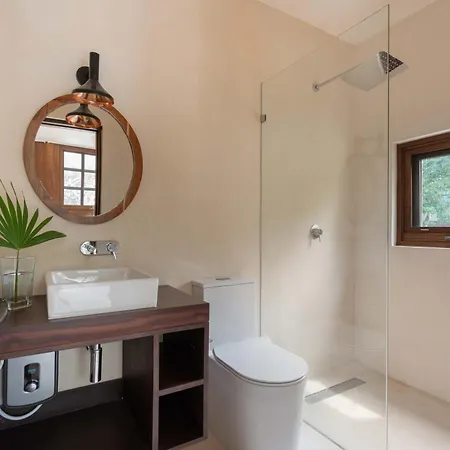 Situated 1.4 miles from Dos Aguas Park, 10-bedroom The Talisman Tulum Villa entices guests to enjoy lawn tennis in the area. Situated in the Zama district of Tulum, this 10-bathroom villa features a terrace overlooking pool.