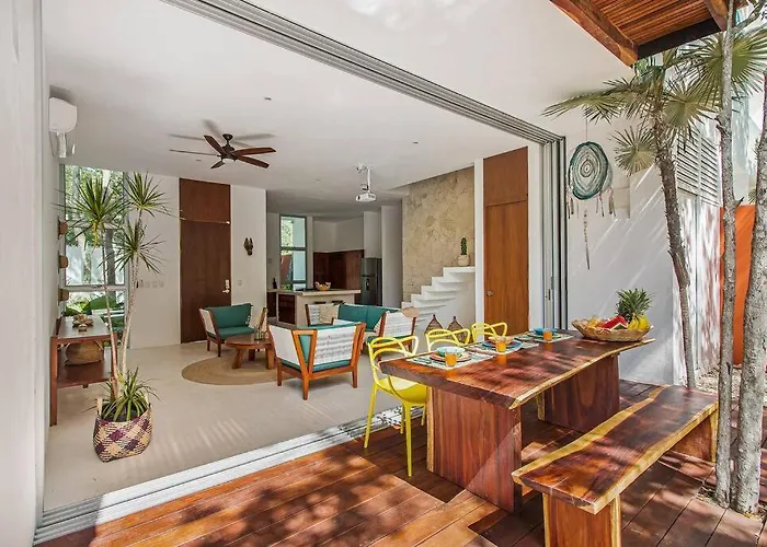 Nestled a 25-minute stroll from Tulum Underwater Dive Shop, Villa Ujo 100 Mb Wifi 2 Private Pools Tulum entices guests to explore various tourist destinations nearby.