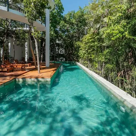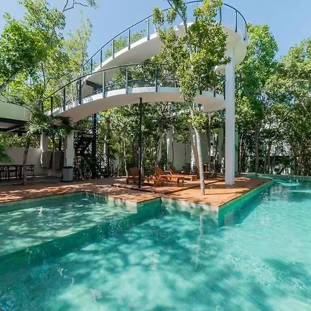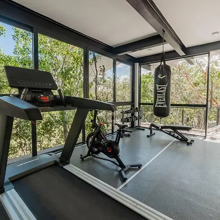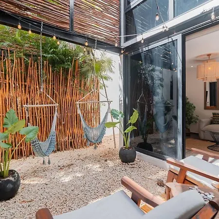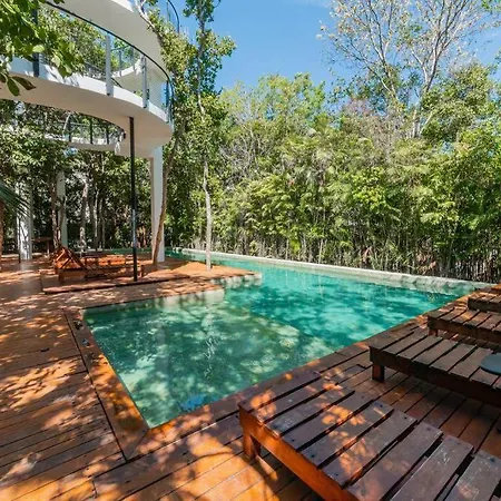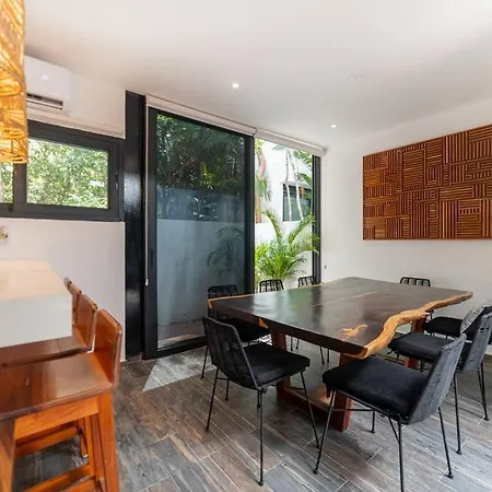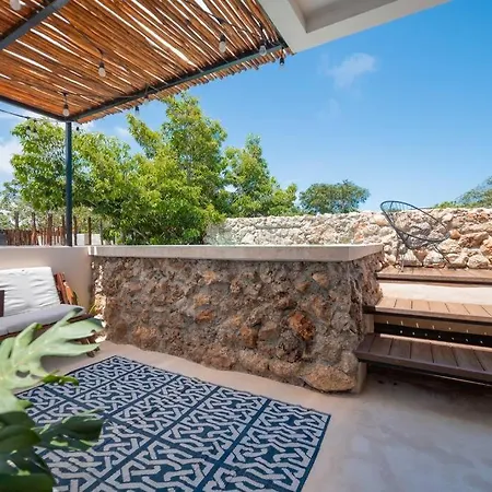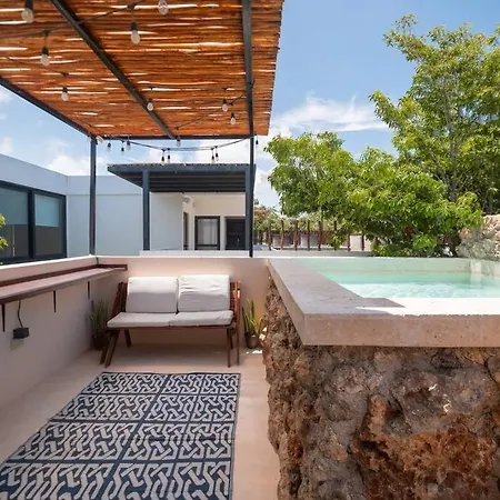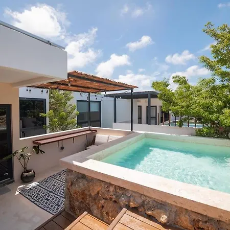Vacation Villa Private Rooftop Pool Walk 2 Town Tulum is located a 25-minute walk from Cenote Abejas and provides a private swimming pool, ensuring a relaxing stay. This 5-bedroom villa includes a free private parking lot and a terrace with views of garden terrace.