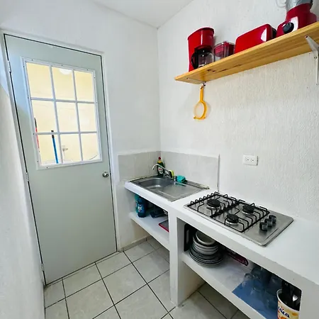 Enjoy the convenience of an equipped kitchen in Zamma Paradise- 1 Recamara Libre En Departamento De 2 Recamaras apartment, allowing guests to prepare their own homemade meals.